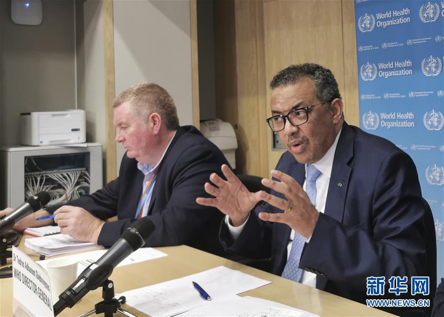 3月2日,在瑞士日內(nèi)瓦,世界衛(wèi)生組織總干事譚德塞(右)出席當(dāng)天的世衛(wèi)組織例行記者會(huì)。新華社記者 陳俊俠 攝