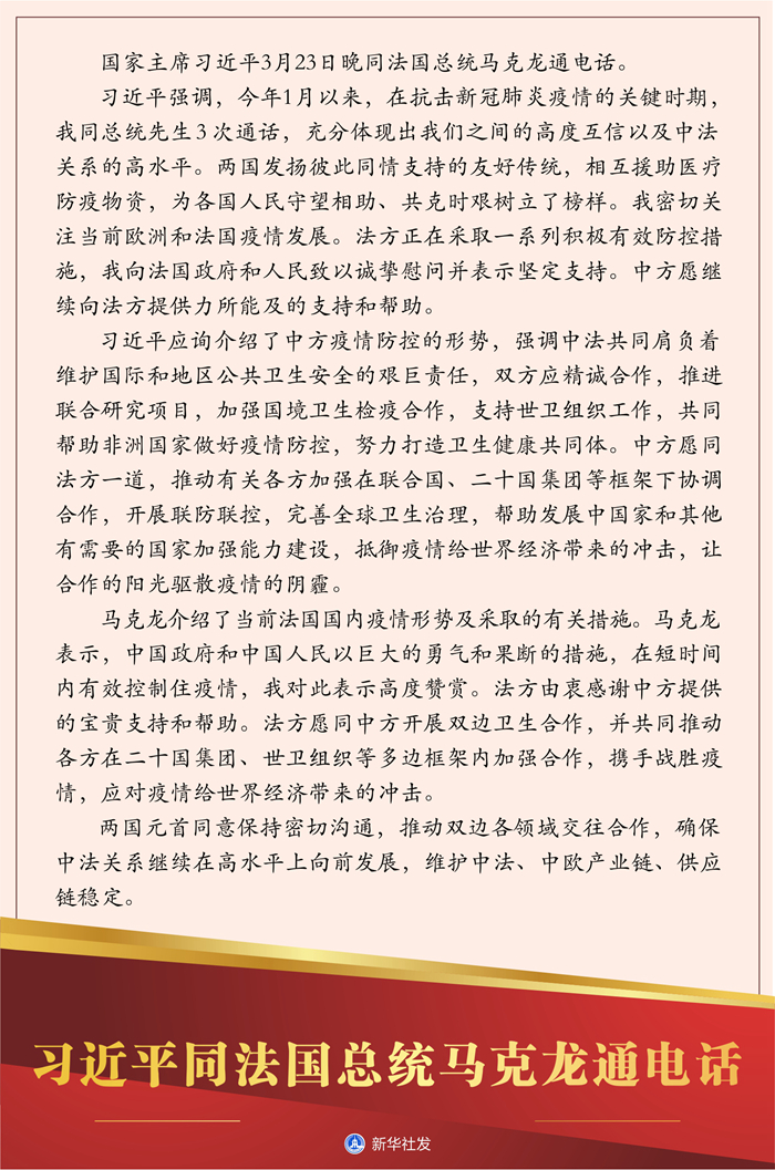 圖表:習(xí)近平同法國總統(tǒng)馬克龍通電話 新華社發(fā)