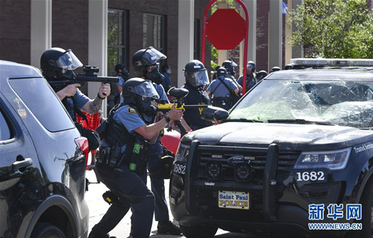 5月28日,在美國(guó)圣保羅市,警察與抗議者發(fā)生沖突。新華社/美聯(lián)