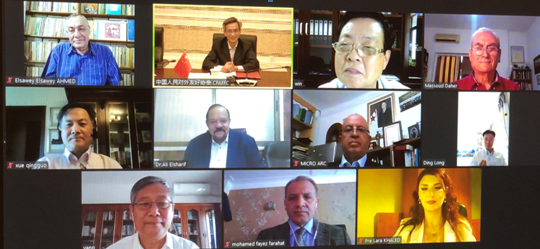 6月30日,中國人民對外友好協(xié)會、中國阿拉伯友好協(xié)會與阿拉伯中國友好協(xié)會聯(lián)合會共同主辦中國阿拉伯智庫學者視頻對話會。中國人民對外友好協(xié)會會長林松添、副會長林怡、北京第二外國語學院校長計金標、中國阿拉伯友好協(xié)會副會長周烈以及來自中國和阿爾及利亞、埃及、黎巴嫩、蘇丹13位知名智庫和學界代表出席。對話會達成廣泛共識,并一致發(fā)出了《中國和阿拉伯智庫學者關(guān)于團結(jié)合作抗疫,攜手推動構(gòu)建人類命運共同體的共同倡議》?;顒佑杀本┑诙鈬Z學院承辦。