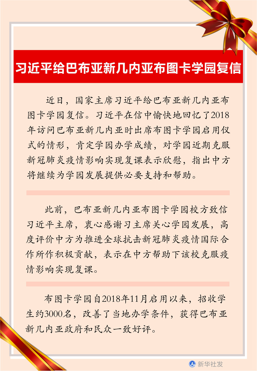 此前,巴布亞新幾內(nèi)亞布圖卡學(xué)園校方致信習(xí)近平主席,衷心感謝習(xí)主席關(guān)心學(xué)園發(fā)展,高度評(píng)價(jià)中方為推進(jìn)全球抗擊新冠肺炎疫情國(guó)際合作所作積極貢獻(xiàn),表示在中方幫助下該??朔咔橛绊憣?shí)現(xiàn)復(fù)課。