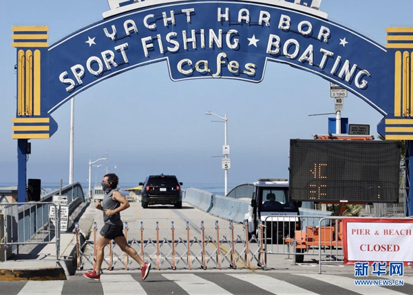 這是7月4日在美國洛杉磯縣拍攝的關閉的圣莫尼卡海灘。新華社發(fā)