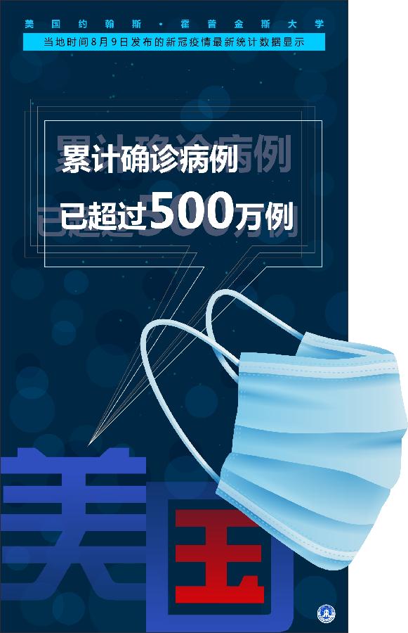 新華社紐約8月9日電? 美國約翰斯·霍普金斯大學(xué)9日發(fā)布的新冠疫情最新統(tǒng)計(jì)數(shù)據(jù)顯示,美國累計(jì)確診病例已超過500萬例。