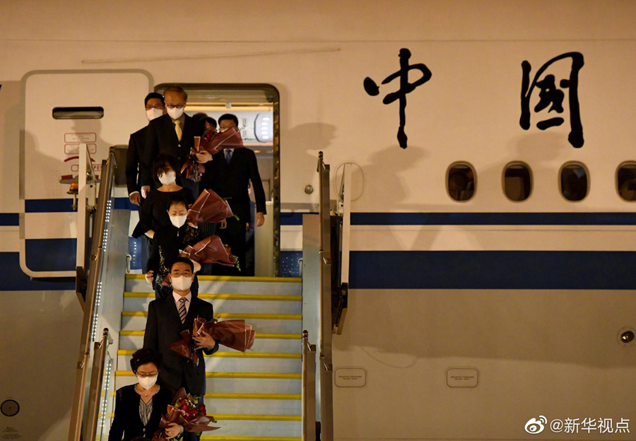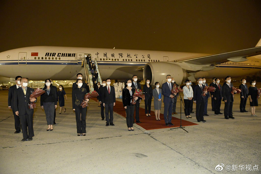 8月17日晚,中國駐休斯敦總領(lǐng)事館全體館員乘包機(jī)抵達(dá)北京,外交部在首都機(jī)場舉行簡短莊重迎接儀式。(記者成欣、岳月偉) ????