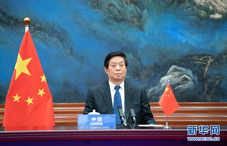 8月19日,全國(guó)人大常委會(huì)委員長(zhǎng)栗戰(zhàn)書在北京人民大會(huì)堂出席第五次世界議長(zhǎng)大會(huì)視頻會(huì)議。 新華社記者 李濤 攝