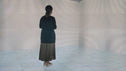 9月5日,新華網(wǎng)記者體驗MR混合現(xiàn)實互動演播廳。 李雪梅拍攝 劉鐘靈制作