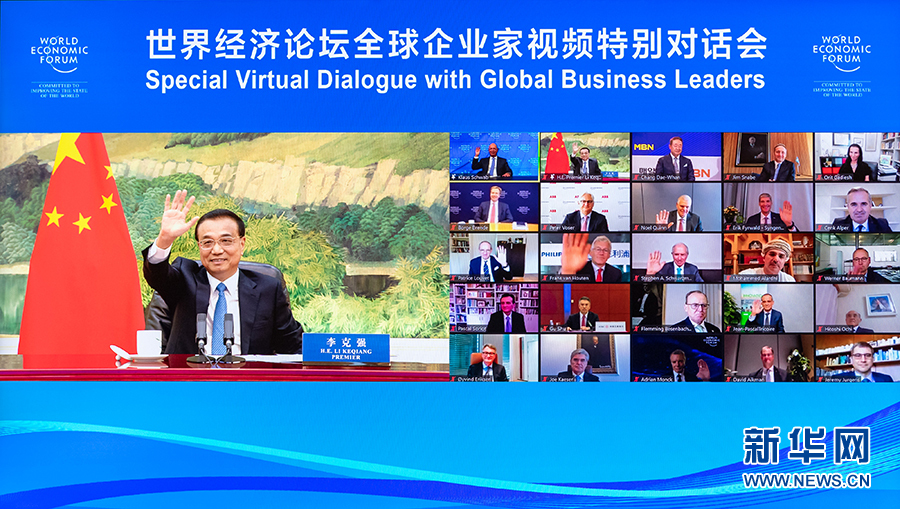 9月15日,國務(wù)院總理李克強在北京人民大會堂出席世界經(jīng)濟論壇全球企業(yè)家特別對話會,發(fā)表致辭并同企業(yè)家代表互動交流。對話會以視頻方式舉行。 新華社記者 翟健嵐 攝