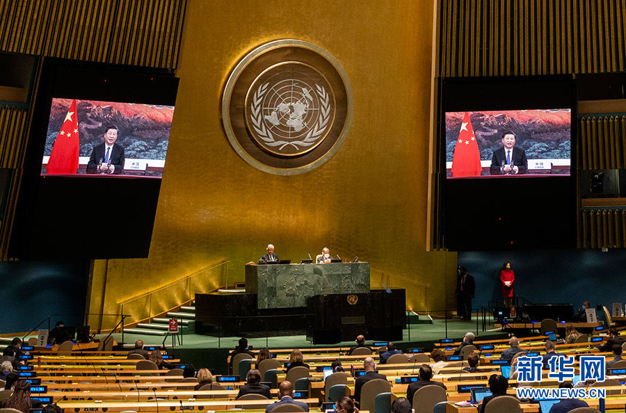 10月1日,國家主席習(xí)近平在聯(lián)合國大會(huì)紀(jì)念北京世界婦女大會(huì)25周年高級(jí)別會(huì)議上通過視頻發(fā)表重要講話。 新華社發(fā)