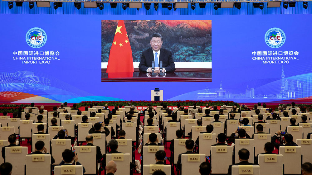 11月4日晚,習(xí)近平在第三屆中國國際進(jìn)口博覽會(huì)開幕式上以視頻方式發(fā)表主旨演講。新華社記者 黃敬文 攝