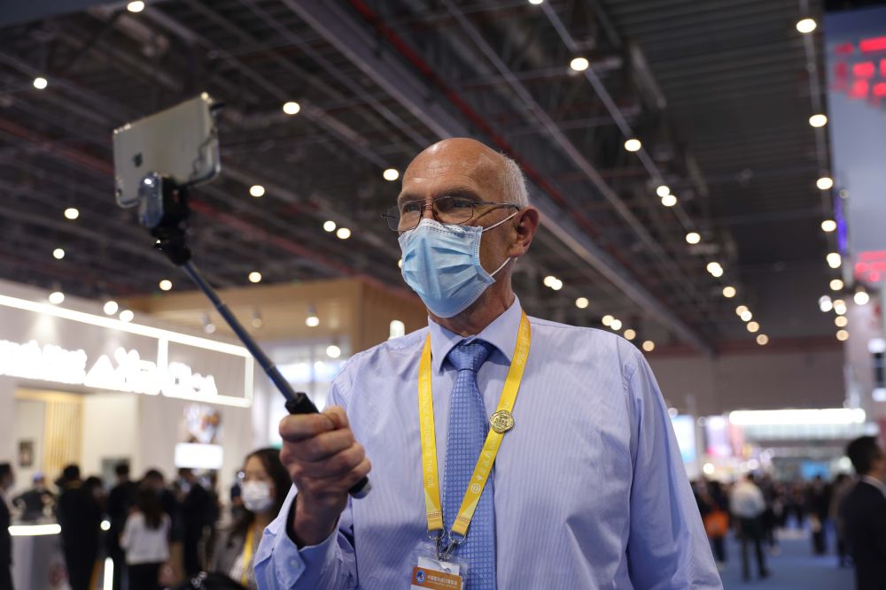 11月7日,羅伊在進(jìn)博會場館內(nèi)自拍留念。