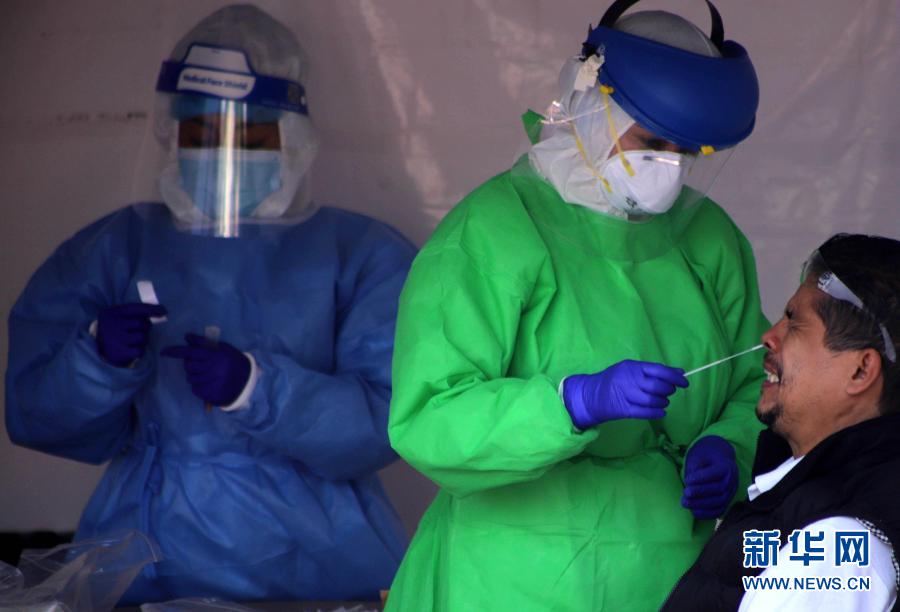 11月14日,在墨西哥首都墨西哥城,醫(yī)務(wù)人員為一名男子采集檢測樣本。