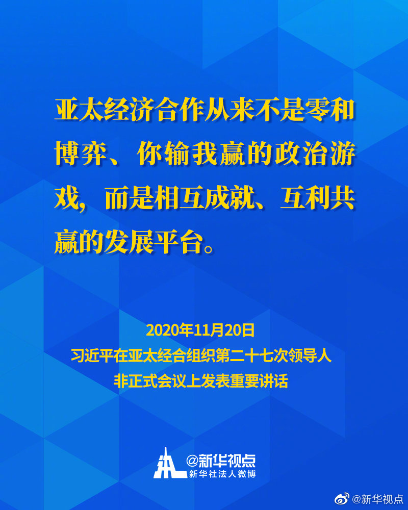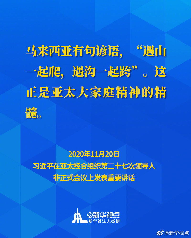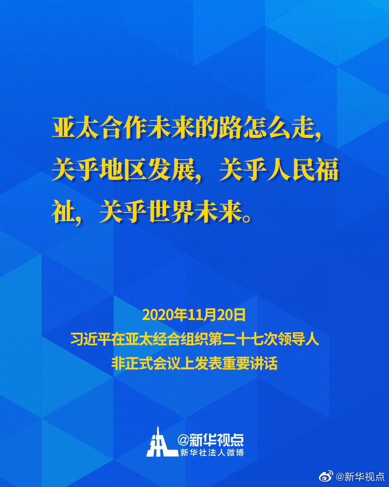 11月20日,國(guó)家主席習(xí)近平在亞太經(jīng)合組織第二十七次領(lǐng)導(dǎo)人非正式會(huì)議上發(fā)表重要講話(huà)。一起來(lái)看習(xí)主席的APEC金句↓↓