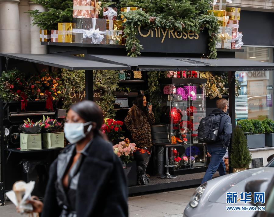 12月2日,行人從英國倫敦一家重新開門的花店旁走過。