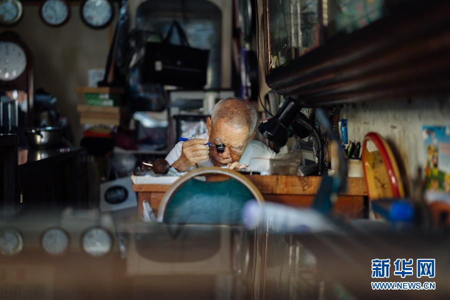 12月5日,在馬來(lái)西亞雪蘭莪州巴生的郁昌表行,韋華在維修手表。新華社記者 朱煒 攝