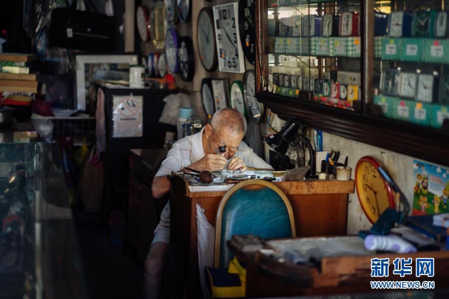 12月5日,在馬來(lái)西亞雪蘭莪州巴生的郁昌表行,韋華在維修手表。新華社記者 朱煒 攝