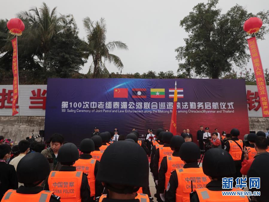 這是第100次中老緬泰湄公河聯(lián)合巡邏執(zhí)法勤務(wù)啟航儀式現(xiàn)場(12月8日攝)。新華社發(fā)(云南省公安廳水上巡邏總隊(duì)提供)