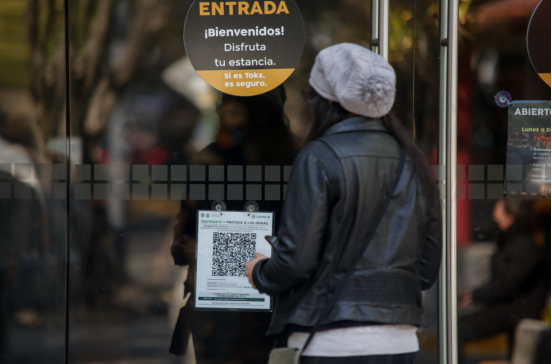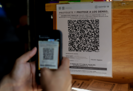 記者在墨西哥城街頭看到,一些銀行、電影院、博物館、購物中心等場所入口顯眼處貼有二維碼,民眾掃碼數(shù)秒后,便會生成地點和時間等基本數(shù)據(jù)。