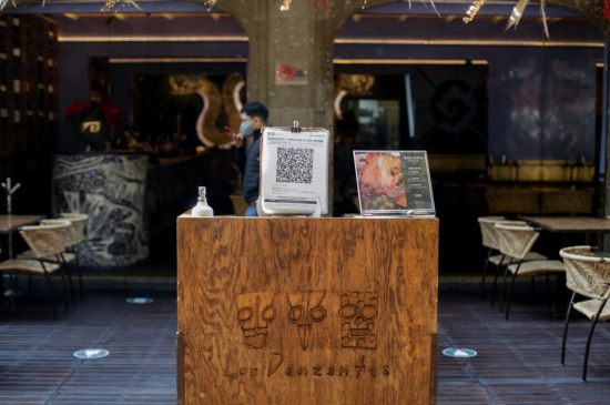 12月8日在墨西哥首都墨西哥城拍攝的一家餐館門口的二維碼。(弗朗西斯科·卡涅多攝)