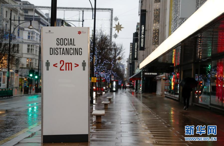 12月21日,英國倫敦的商業(yè)街牛津街一片冷清。新華社記者 韓巖 攝
