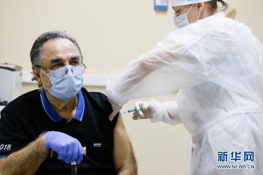 12月30日,在俄羅斯首都莫斯科,一名醫(yī)護(hù)人員為一名老人接種疫苗。新華社發(fā)(亞歷山大攝)
