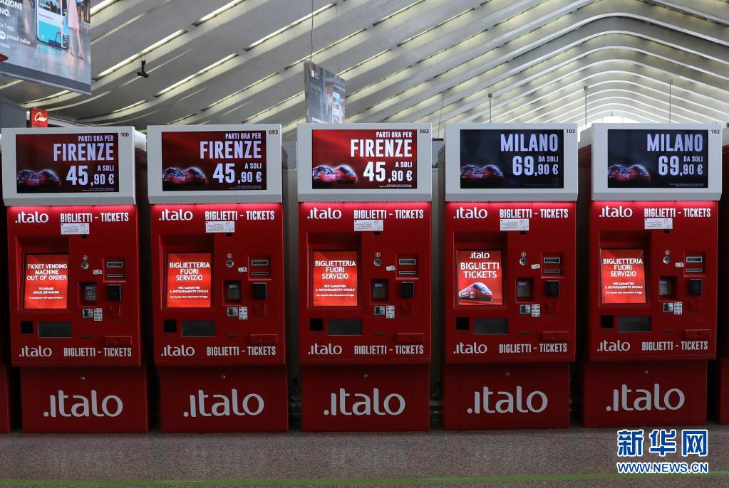 4月3日拍攝的意大利首都羅馬的特米尼火車站內(nèi)的售票機。