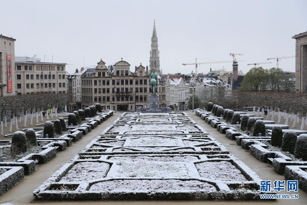 比利時(shí)近日迎來春雪,首都布魯塞爾銀裝素裹,景色別致。