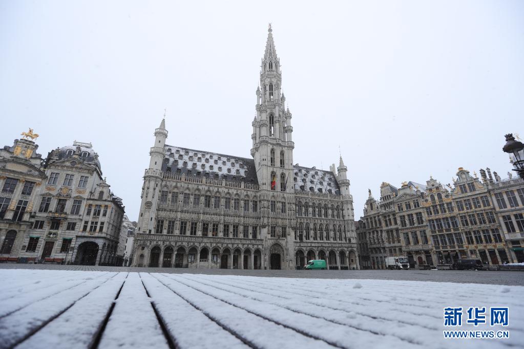 比利時(shí)近日迎來春雪,首都布魯塞爾銀裝素裹,景色別致。