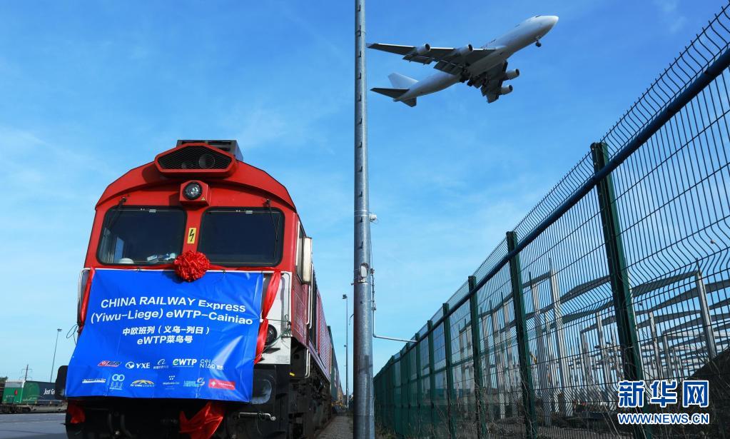 2019年10月25日,滿載著82個標準箱的中歐班列(義烏—列日)“世界電子貿(mào)易平臺(eWTP)菜鳥號”首趟列車抵達比利時列日物流多式聯(lián)運貨運場站。新華社記者 潘革平 攝
