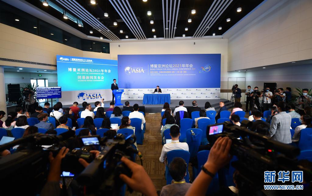 這是博鰲亞洲論壇2021年年會閉幕新聞發(fā)布會現(xiàn)場(4月21日攝)。新華社記者 郭程 攝