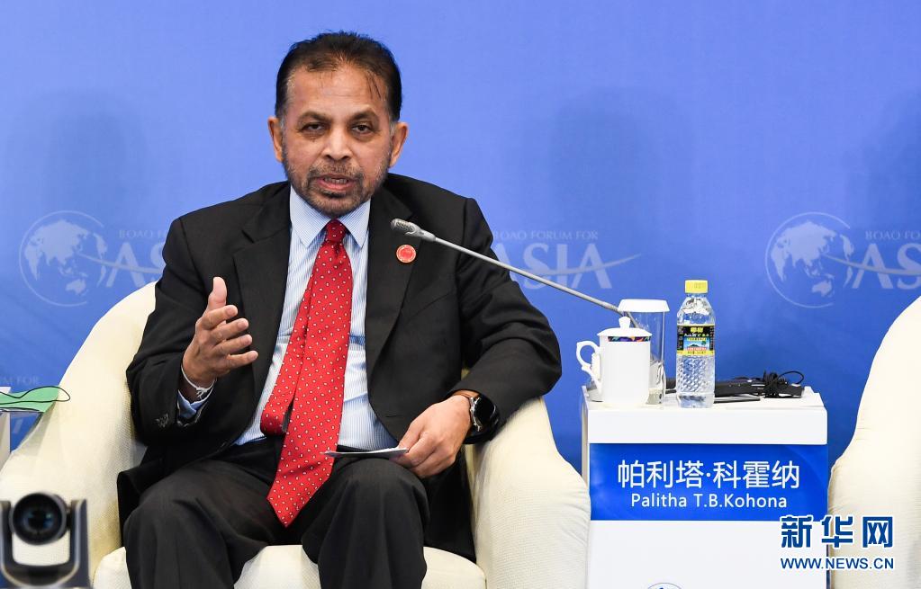 4月19日,斯里蘭卡駐華大使帕利塔·科霍納在“21世紀海上絲綢之路島嶼經(jīng)濟”分論壇上發(fā)言。新華社記者 楊冠宇 攝