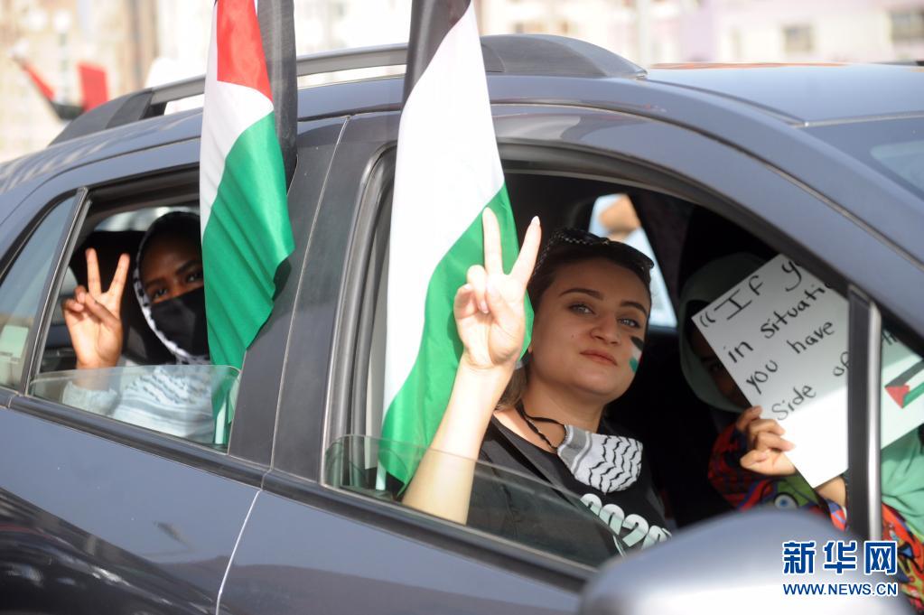 5月15日,人們在科威特哈瓦利省參加抗議示威活動,聲援巴勒斯坦民眾。