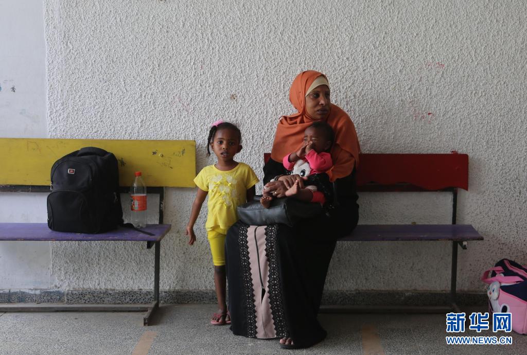 5月17日,受巴以沖突影響而逃離家園的巴勒斯坦婦女和兒童在加沙地帶拉法的一所學(xué)校臨時棲身。