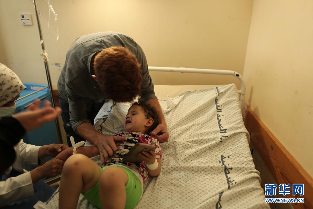 5月20日,一名因空襲受傷的巴勒斯坦兒童在加沙地帶城市汗尤尼斯的醫(yī)院中接受治療。