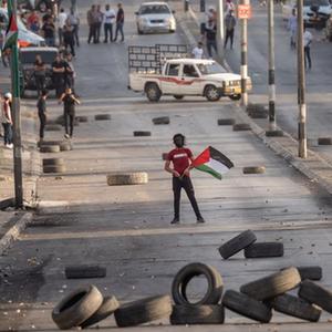 5月20日,一名兒童在約旦河西岸城市納布盧斯參加聲援活動。