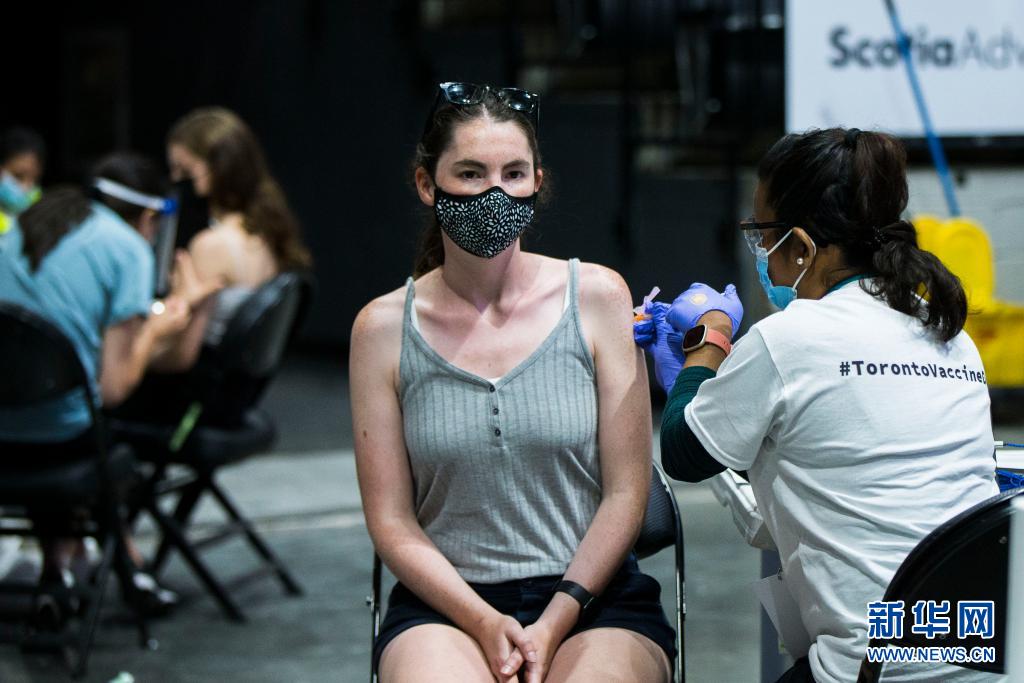 6月27日,在加拿大多倫多,一名女子在大型新冠疫苗接種中心接種疫苗。
