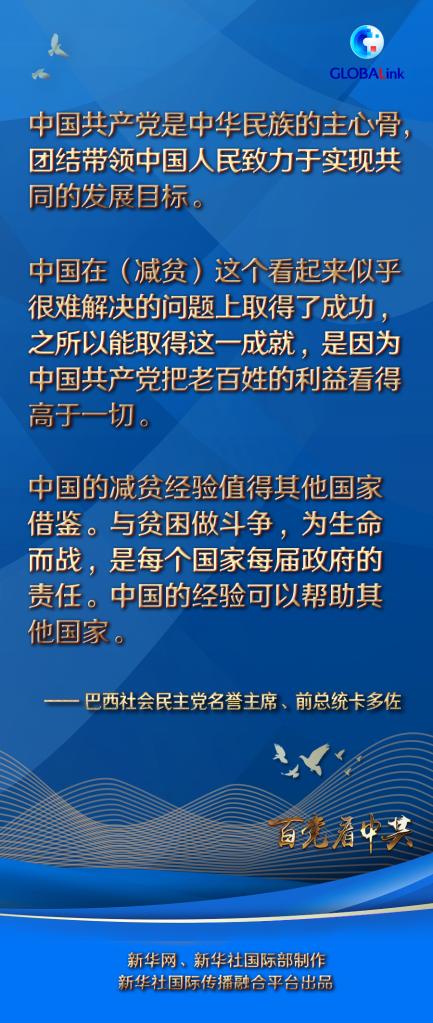 卡多佐說,他曾幾次訪問中國(guó),中國(guó)的發(fā)展給他留下了深刻印象。他稱贊中國(guó)共產(chǎn)黨領(lǐng)導(dǎo)下的中國(guó)在減少貧困方面取得巨大成就。