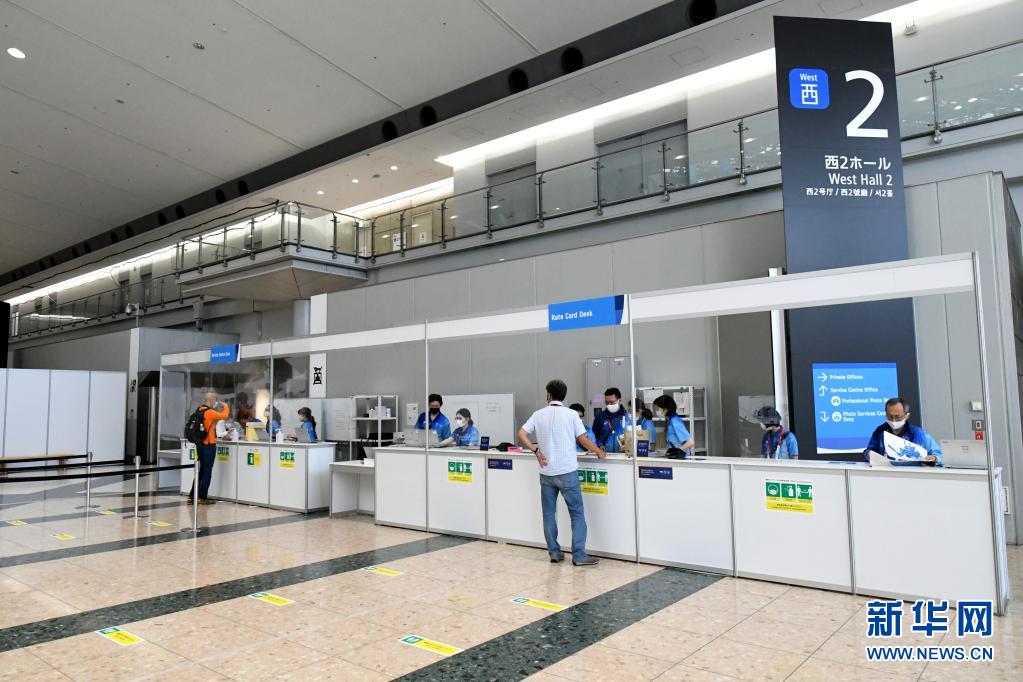 7月1日,工作人員在奧運(yùn)會(huì)主新聞中心服務(wù)臺(tái)接待媒體人員。新華社記者 華義 攝