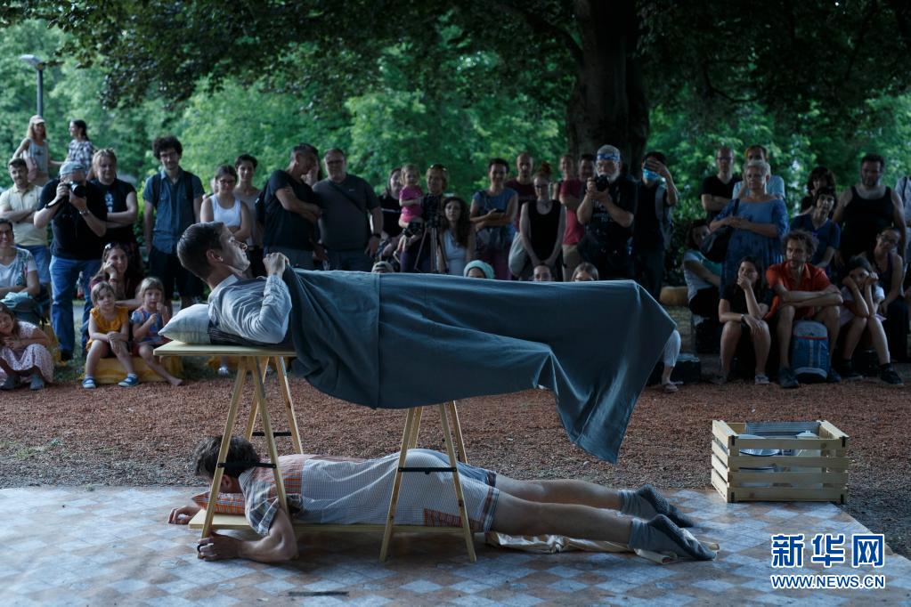 6月30日傍晚,藝術(shù)工作者在斯洛文尼亞首都盧布爾雅那進(jìn)行街頭戲劇節(jié)表演。