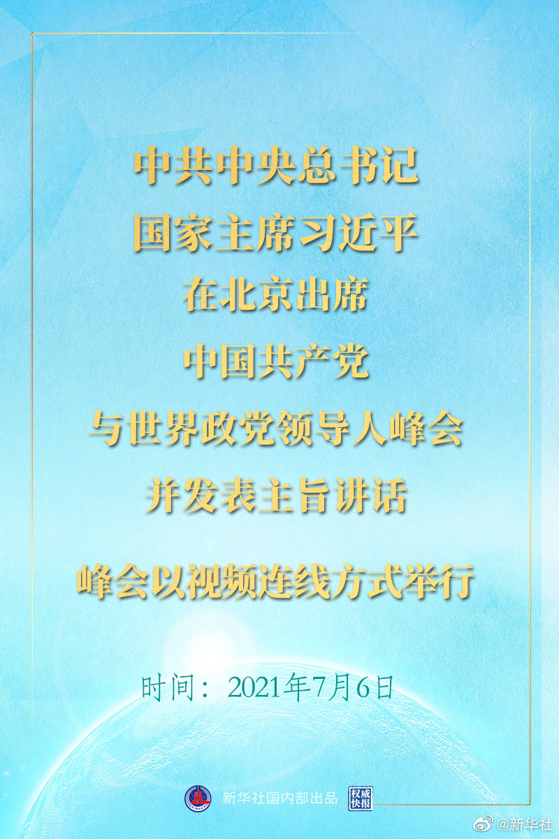 7月6日晚,中共中央總書記、國家主席習(xí)近平在北京出席中國共產(chǎn)黨與世界政黨領(lǐng)導(dǎo)人峰會并發(fā)表主旨講話。峰會以視頻連線方式舉行。