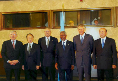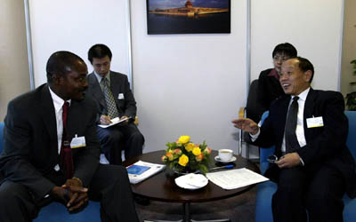 | | ????June 7. 1996 on a visit to the Republic of Kiribati, a country with a territory of 684 square kilometres and a population of 80,000 and also known as the Cross of the World because it happens to be the only country where both the equator and the international date line run through. |